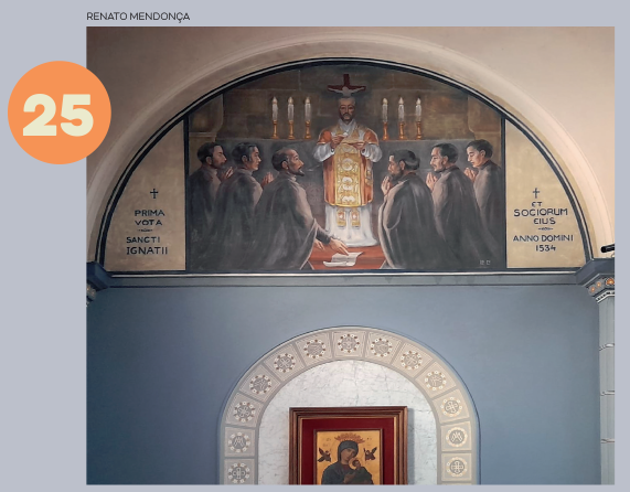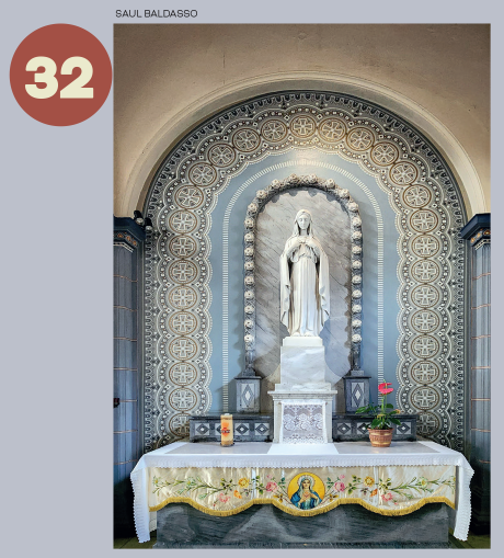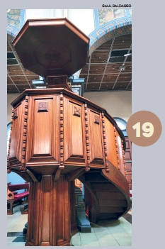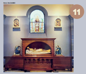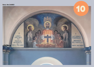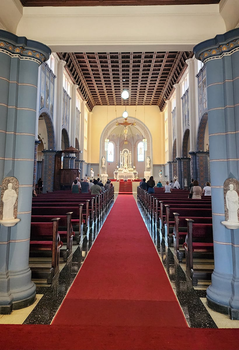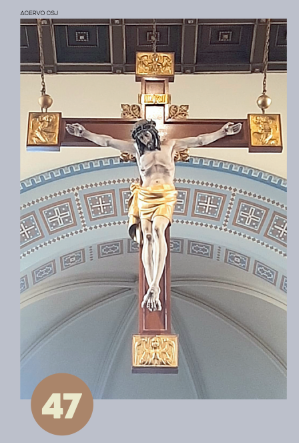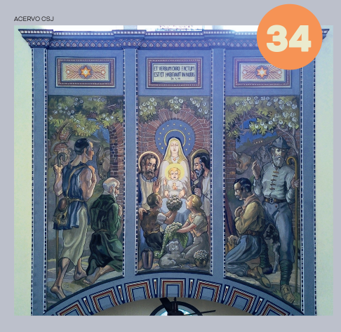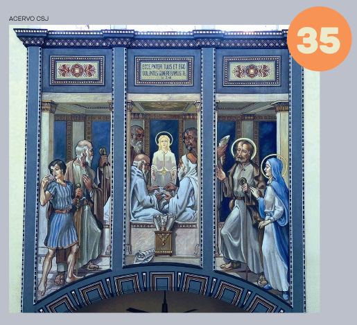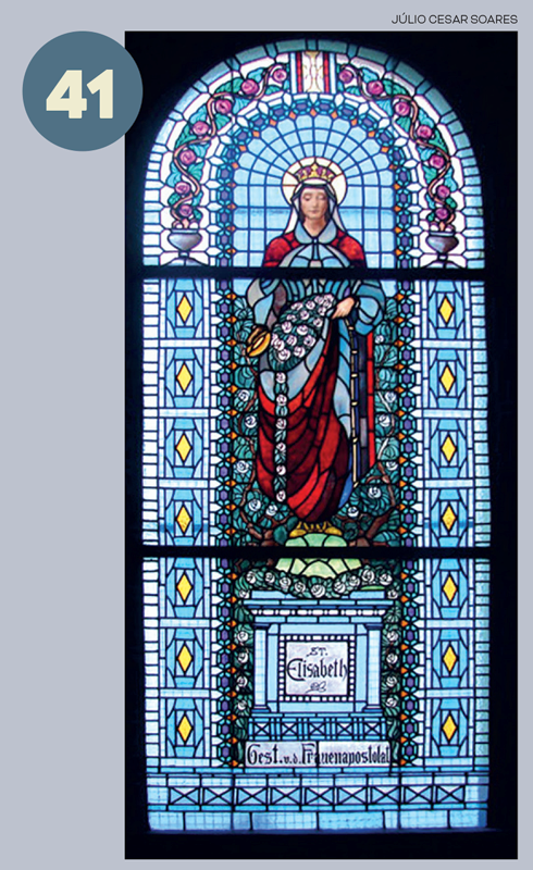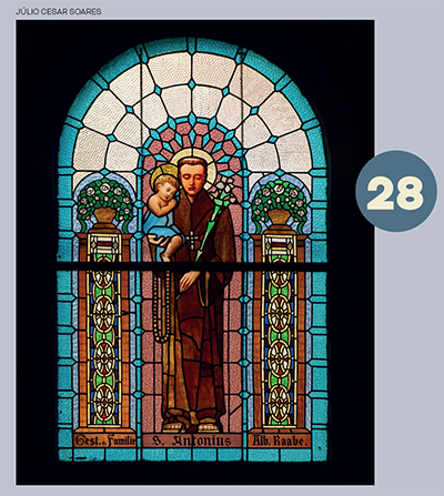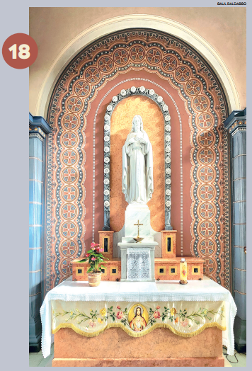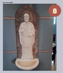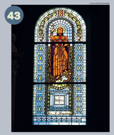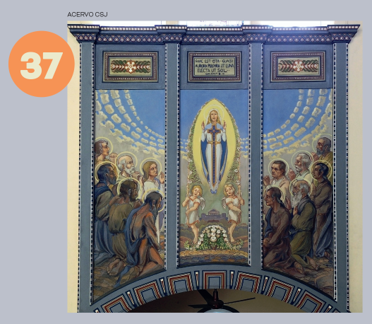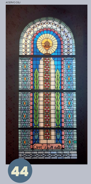 Pormeio de arcos, colunetas e outros ornamentos, ele nos oferece uma sensação de profundidade. A estátua de São José tendo ao colo o Menino Jesus, criação do escultor alemão Alfred Adlof, remete à estrutura de arcos e murais que Lutzenberger impôs à decoração interna na nave central.