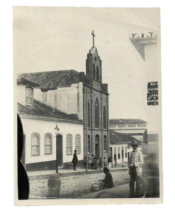 Em imagem dos anos 1910, a primeira Igreja São José, na rua Bragança